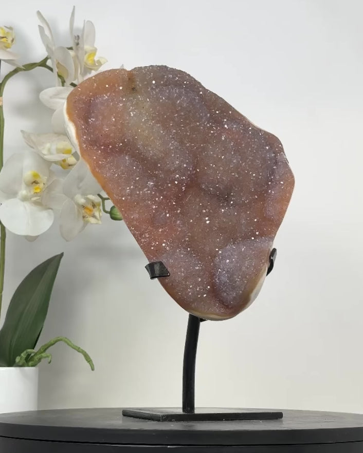 Large Natural Peach Tone Quartz Druzy Cluster on Stand - MWS2800