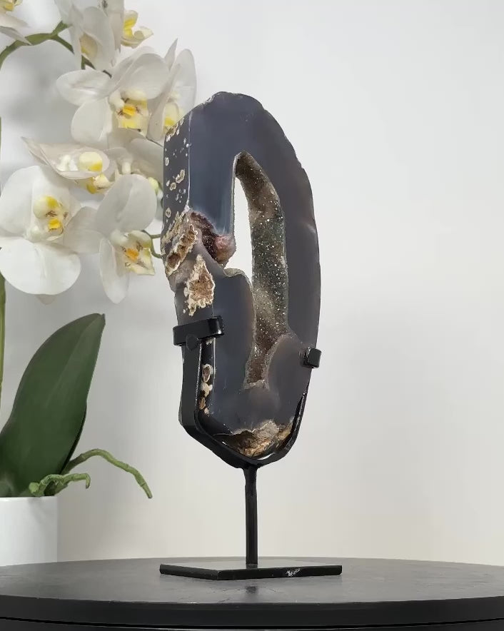 Natural Agate & Quartz Druzy Stone Portal with Metal Stand - MWS2237