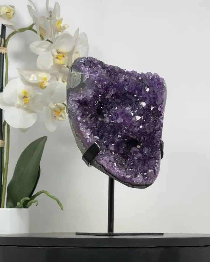 Natural Amethyst Crystal Cave on Metallic Stand - MWS2182