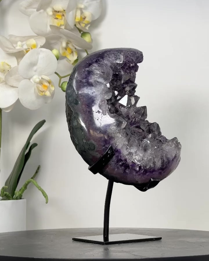 Natural Amethyst Crystal Moon Shape on metal stand - MWS2583