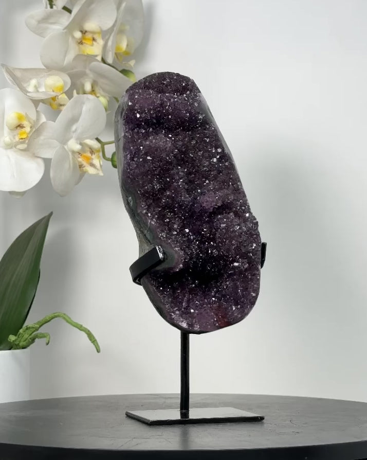 Natural Amethyst Crystal with Stalactite Formations, Metal Stand Included - MWS2553