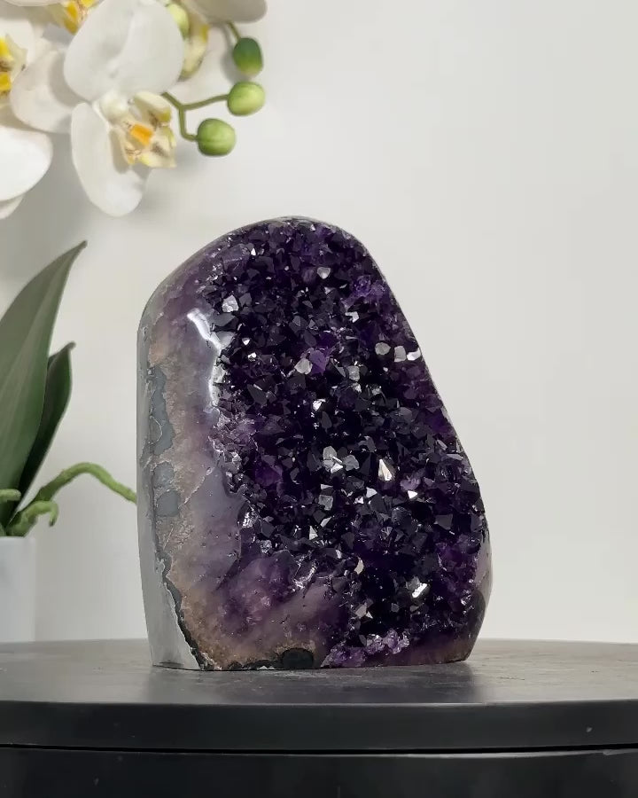 ✧ Our beauties were extracted from the prestigious Don Camilo mine located in Artigas, Uruguay, this unique crystal piece boasts a natural elegance. Its edges have been delicately polished to accentuate the crystals' unique and vibrant colors.