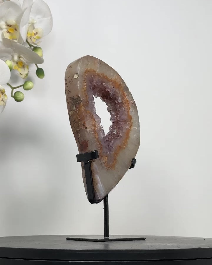 Explore the enchanting world of Uruguay's finest minerals with our unique collection of hand-polished specimens. Each piece is meticulously crafted and accompanied by a custom-made metal stand, enhancing its natural beauty and elegance.