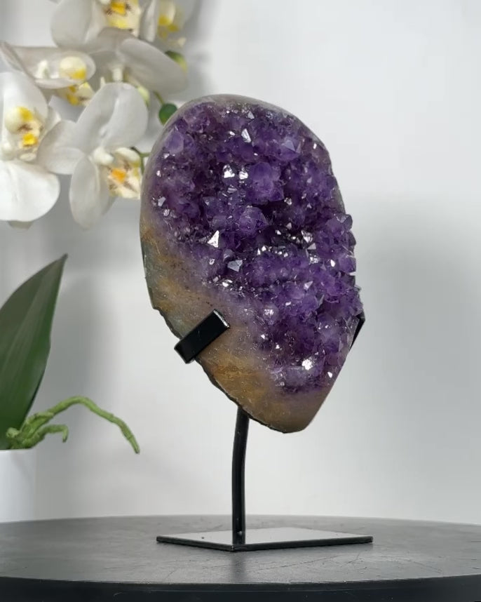 Elevate the ambiance of your home or office with the captivating beauty of our Quartz Specimens. Nestled elegantly on a modern metal display, this stunning piece blends natural elegance with contemporary style, making it a perfect addition to any decor.