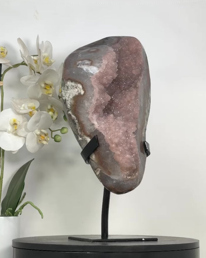 Quartz Geode with Pink Druzy Crystals – Natural Stone Display Specimen - MWS2803