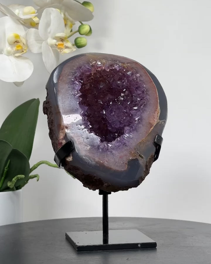 Stunning Natural Amethyst & Agate Polished Geode with metal Stand - MWS1335