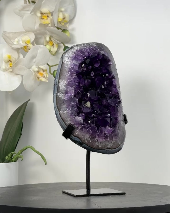 Stunning Natural Amethyst Crystal with Blue Banded Agate Matrix - MWS2591