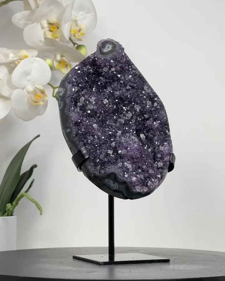 Elevate the ambiance of your home or office with the captivating beauty of our Quartz Specimens. Nestled elegantly on a modern metal display, this stunning piece blends natural elegance with contemporary style, making it a perfect addition to any decor.