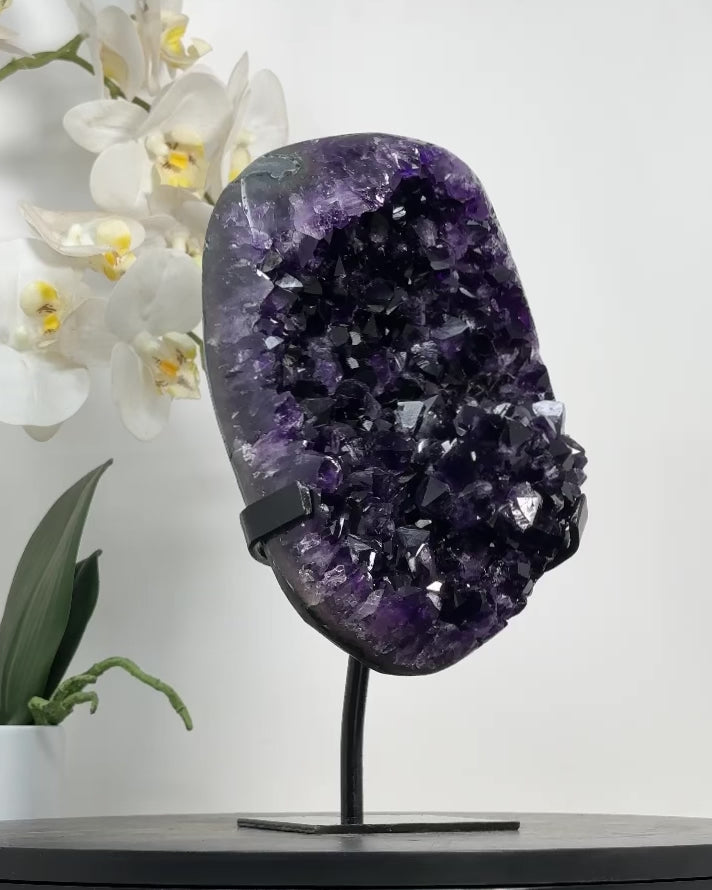 Elevate the ambiance of your home or office with the captivating beauty of our Quartz Specimens. Nestled elegantly on a modern metal display, this stunning piece blends natural elegance with contemporary style, making it a perfect addition to any decor.
