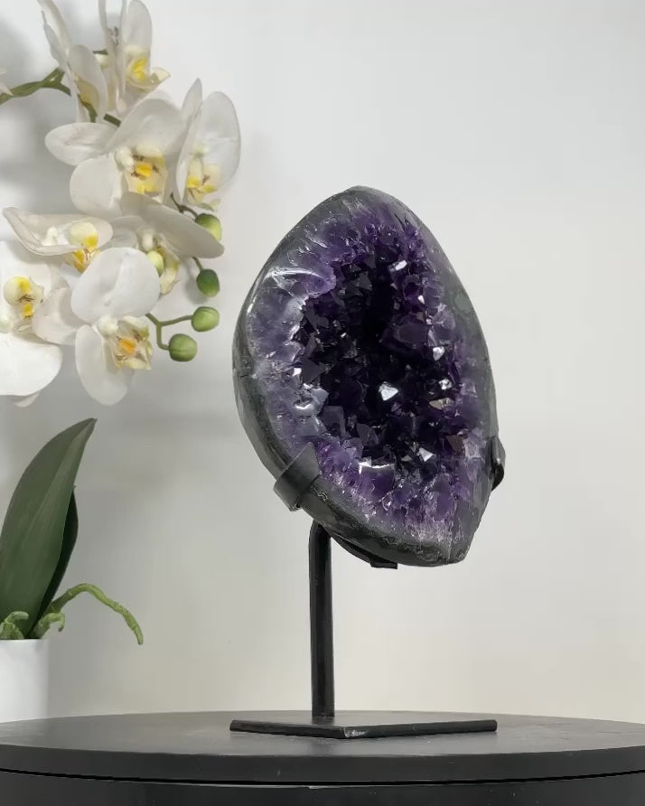 Top Grade Natural Amethyst Geode - Metallic Stand Included