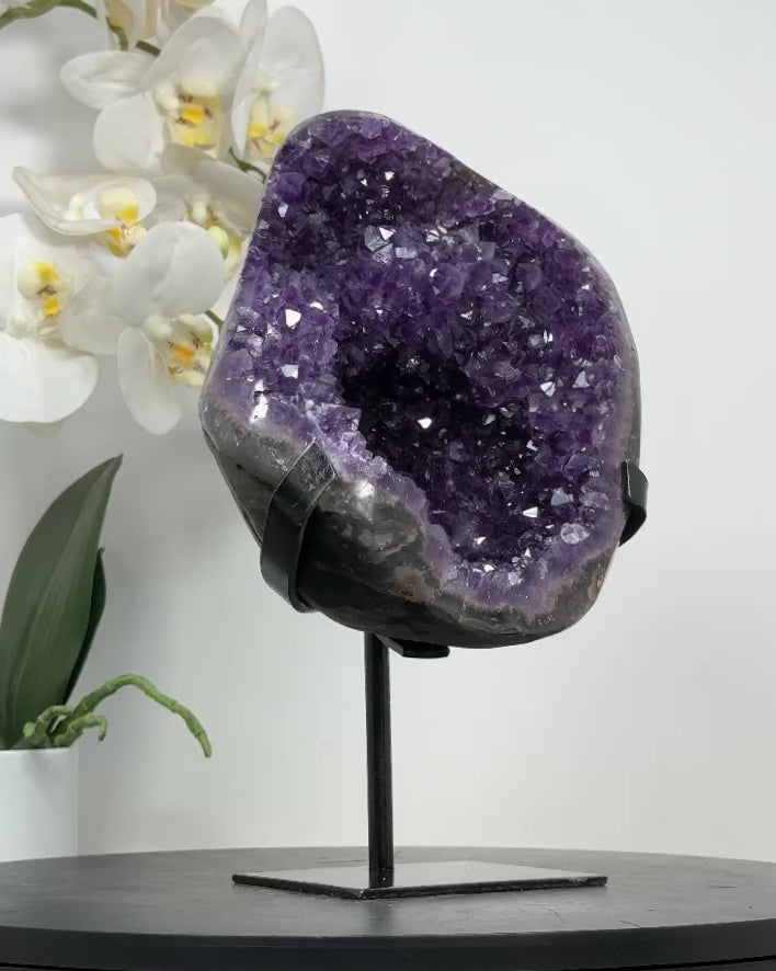 Elevate the ambiance of your home or office with the captivating beauty of our Quartz Specimens. Nestled elegantly on a modern metal display, this stunning piece blends natural elegance with contemporary style, making it a perfect addition to any decor.