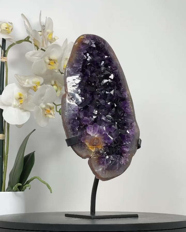 Elevate the ambiance of your home or office with the captivating beauty of our Quartz Specimens. Nestled elegantly on a modern metal display, this stunning piece blends natural elegance with contemporary style, making it a perfect addition to any decor.