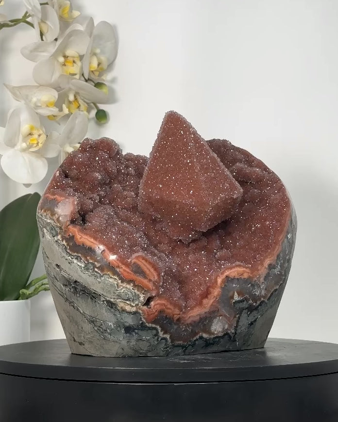 Unique Calcite Crystal with Orange Druzy Crystals – Collector’s Grade Mineral from Uruguay - CBP1240
