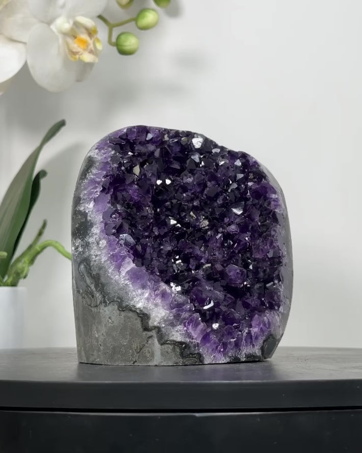 Handcrafted from premium quality Uruguayan Amethyst, these geodes are not only stunning pieces of home decor, but also natural sources of positive energy.