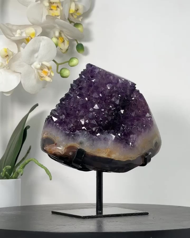 Elevate the ambiance of your home or office with the captivating beauty of our Quartz Specimens. Nestled elegantly on a modern metal display, this stunning piece blends natural elegance with contemporary style, making it a perfect addition to any decor.